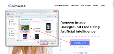 - Jika sudah berada dalam situsnya, masukkan foto dengan cara klik Choose a Photo ➜ pilih foto dalam folder ➜ Open. Atau kamu juga bisa langsung mendrag fotonya dari folder ke situsnya langsung.
