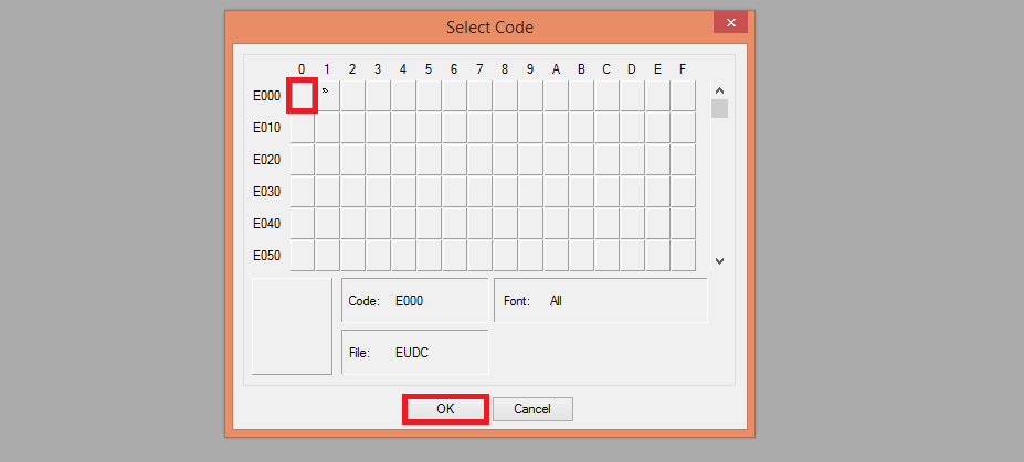 - Jika sudah berada dalam aplikasi Private Character Editor, akan muncul Select Code. Klik salah satu kotak lalu OK