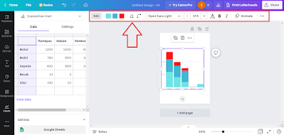 - Kamu juga bisa mengatur tampilan grafik seperti mengganti warna grafik, mengatur font (ukuran font, jenis font, warna font, dsb), menyesuaikan spasi dan lain-lain menggunakan fitur yang terletak di sebelah atas layar